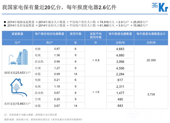 目前我國主要五類家電保有量近 20 億臺,2014年 報廢數(shù)量約為 26,097 萬件,商務(wù)部統(tǒng)計的實際回收量為 13,583 萬件,回收率 52%,減去 B 端回收,實際回收率要更小。廢棄電子電器處理企業(yè)間的競爭主要集中在原料的競爭,從 2014 年下半年開始,回收價在僧多粥少的情況下持續(xù)上漲,導(dǎo)致處理企業(yè)的處理成本不斷增加,利潤空間越來越小。保守估計,我國家電回收年市場規(guī)模約為 1,100 億元。