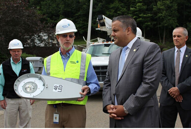 賓厄姆頓市長Rich David(右數(shù)第二個)早在2015年6月宣布LED路燈試點。(圖片由Binghamton提供)