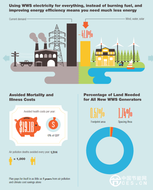 同時(shí),可再生能源的發(fā)展不僅可以大大降低成本,還可以減少死亡率。預(yù)計(jì)到2050年,死于空氣污染的人數(shù)將降至1514人,每人每年節(jié)省能源、健康和氣候成本8025美元,其中包括節(jié)省437美元電力成本。