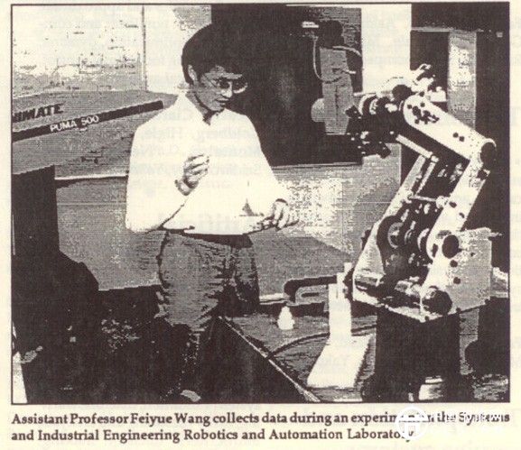 圖1 20世紀(jì)90年代初本文作者在亞利桑那大學(xué)機(jī)器人與自動(dòng)化實(shí)驗(yàn)室工作,圖中有2個(gè)PUMA工業(yè)機(jī)器人和1個(gè)三菱教學(xué)機(jī)器人