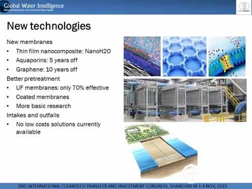 脫鹽技術(shù):根據(jù)脫鹽市場(chǎng)目前面臨的三種挑戰(zhàn),一是要降低能耗,二是要改善預(yù)處理以減少膜污染,三是要降低環(huán)境影響,客戶(hù)們感興趣的技術(shù)也可以相應(yīng)歸為三類(lèi),一是新型膜技術(shù),比如國(guó)中水務(wù)投資的丹麥水通道蛋白技術(shù),還有石墨烯薄膜技術(shù)等,只不過(guò)這些技術(shù)要真正實(shí)現(xiàn)商業(yè)化,還有數(shù)年的路要走,二是可用于預(yù)處理的超濾膜和涂層膜等,三是客戶(hù)急需但卻仍是技術(shù)空白的低成本的低影響開(kāi)發(fā)式脫鹽技術(shù)。