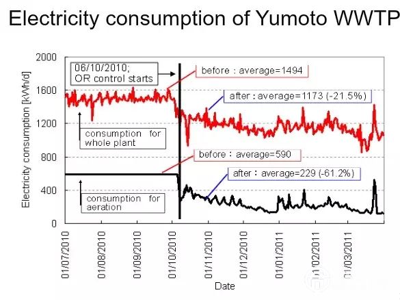 曝氣能耗更大幅降低61%,全廠能耗降低21.5%。
