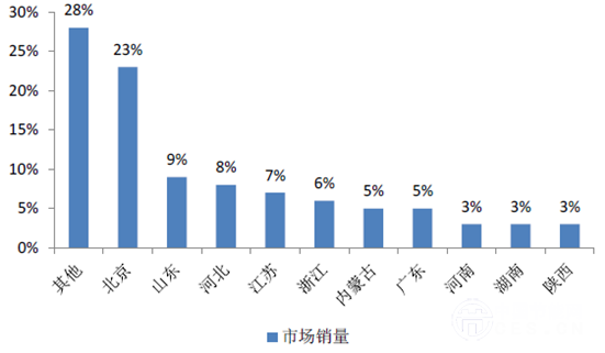 從區(qū)域分布上看,環(huán)境監(jiān)測(cè)產(chǎn)品銷量基本集中在東部發(fā)達(dá)地區(qū)。一方面這是因?yàn)榻?jīng)濟(jì)發(fā)達(dá)地區(qū)工業(yè)集中,污染更加嚴(yán)重,當(dāng)?shù)卣沫h(huán)境監(jiān)測(cè)投入也更多。同時(shí),地方的財(cái)力也更強(qiáng),對(duì)于監(jiān)測(cè)點(diǎn)的建設(shè)更舍得投入。
