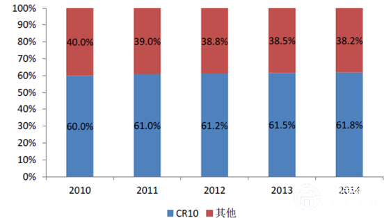 需要注意的是,整個(gè)行業(yè)在快速發(fā)展得同時(shí)也出現(xiàn)了營(yíng)收增速下滑,行業(yè)集中度提高的趨勢(shì)。行業(yè)營(yíng)收增速在2009年后明顯下滑的主要原因是業(yè)內(nèi)競(jìng)爭(zhēng)加劇。業(yè)內(nèi)主要上市公司2010年以來整體毛利率雖然基本保持在50%以上,但一直呈現(xiàn)下降趨勢(shì)。表明激烈的競(jìng)爭(zhēng)使價(jià)格戰(zhàn)日趨白熱化,而不斷蠶食毛利。同時(shí),激烈的競(jìng)爭(zhēng)使行業(yè)集中度迅速提升。“十二五”期間,行業(yè)主要的競(jìng)爭(zhēng)格局已經(jīng)基本確定,根據(jù)中國(guó)環(huán)境監(jiān)測(cè)總站的數(shù)據(jù),行業(yè)銷售收入前十的企業(yè)市場(chǎng)占有率一直保持在60%左右。行業(yè)內(nèi)基本形成寡頭局面,隨著這幾個(gè)大公司通過兼并收購戰(zhàn)略不斷擴(kuò)張,未來的市場(chǎng)份額集中度還將進(jìn)一步提高。由于行業(yè)本身所具有的高技術(shù)壁壘,未來行業(yè)內(nèi)的大公司將擁有更深的護(hù)城河。