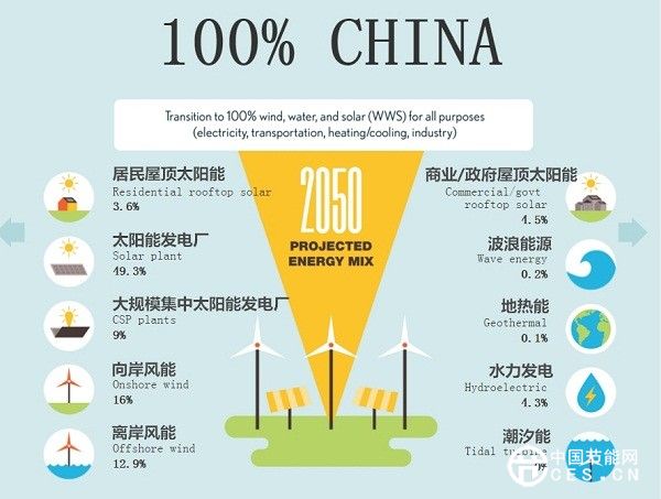 ▼如果按雅各布森的這份研究,到2050年只依靠可再生能源的中國,能源結構就應該是這樣的:
