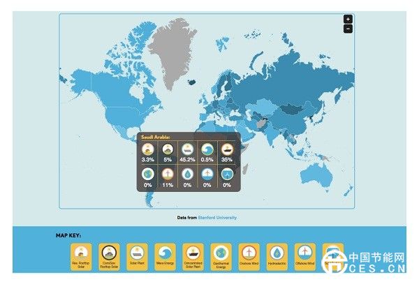 馬克˙Z˙雅各布森(MarkZ.Jacobson)是斯坦福大學大氣能源研究項目的主管,他的團隊與加州大學的研究人員一起分析了139個國家的能源藍圖:“這些能源計劃圖表可以表明,無論是在技術層面還是經濟層面上,改變不同國家的能源結構是可行的。”