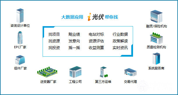 i光伏致力于光伏領(lǐng)域的資源融合和產(chǎn)業(yè)互聯(lián),通過光伏項目的開發(fā)設(shè)計、建設(shè)運營、融資、保險、交易等提供信息通道、業(yè)務(wù)融合和應(yīng)用服務(wù),建立基于互聯(lián)網(wǎng)的完整產(chǎn)業(yè)生態(tài)體系,通過一站式的服務(wù)內(nèi)容O2O的服務(wù)方式為光伏產(chǎn)業(yè)上下游企業(yè)構(gòu)筑業(yè)務(wù)交流和業(yè)務(wù)發(fā)展的平臺,可為業(yè)內(nèi)提供光伏運行對標、光資源評估、碳資產(chǎn)管理和碳交易、光伏投資收益評估、光伏電站交易技術(shù)評估、可再生能源電價附加補助精靈、可再生能源項目數(shù)字地圖及風電場運行對標和風資源評估等方面的產(chǎn)品及服務(wù)。