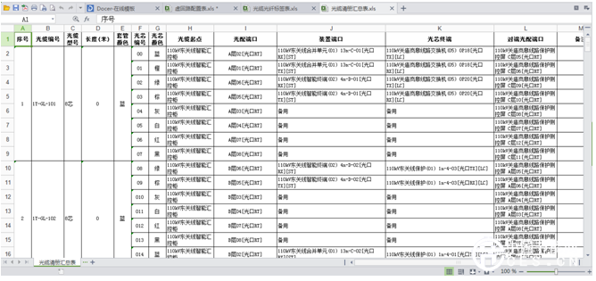圖9:coMis智能變電站設(shè)計系統(tǒng)導(dǎo)出的光纜清冊匯總表示圖