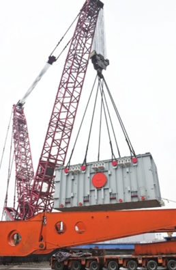 核心提示:前天,一臺變電容量1000兆伏安、重逾400噸的1000千伏特高壓變壓器,經(jīng)由昆山市潯陽江碼頭成功吊裝中轉(zhuǎn),入駐位于昆山的全球在建規(guī)模最大、變電
