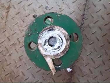 這樣的設(shè)計方式在運行中是有弊端的,首先不能保證兩臺蒸發(fā)器的氣氨供應(yīng)平衡。其次是單臺蒸發(fā)器運行容易超負(fù)荷而導(dǎo)致液氨進(jìn)入緩沖罐而引起管道結(jié)霜或震動。蒸發(fā)槽底部未加裝排污閥致使液氨在氣化時將雜質(zhì)帶入緩沖罐,對此我們加強(qiáng)緩沖罐的排污。2013年3月#1、2機(jī)組混合器氣氨入口調(diào)整閥堵塞管徑變細(xì)。拆開閥門檢查(見圖四),有白色物質(zhì)。