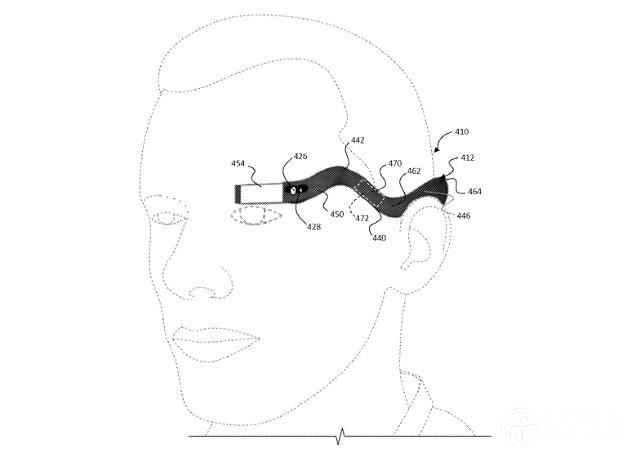 根據(jù)專利描述的圖像來看,這款設(shè)備被掛在耳朵上,并且根據(jù)頭部的曲線延伸到眼前,而作為一款電子增強(qiáng)現(xiàn)實(shí)設(shè)備,它將顯示屏懸浮在了使用的眼前,而與原來的谷歌眼鏡設(shè)計(jì)風(fēng)格完全不同,并且看起來非常小巧。另外,在這款眼鏡的前方還有攝像頭,并且可以將增強(qiáng)現(xiàn)實(shí)內(nèi)容投射到用戶的眼中。