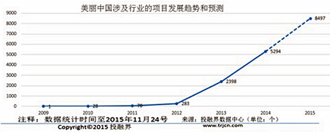 “美麗中國(guó)”主題項(xiàng)目自2013年開(kāi)啟增勢(shì)以來(lái),年均增長(zhǎng)率高達(dá)100%以上。2009年,項(xiàng)目資金需求僅為1001萬(wàn)元,經(jīng)歷了6年的發(fā)展,2015年項(xiàng)目資金需求已達(dá)到約8350億元,且這一數(shù)字還在增長(zhǎng)中。近年來(lái),國(guó)內(nèi)多個(gè)城市提出建設(shè)生態(tài)城市,圍繞“美麗中國(guó)”的相關(guān)政策也持續(xù)出臺(tái)。在政策助推下,相關(guān)行業(yè)迎來(lái)了投資創(chuàng)業(yè)潮。
