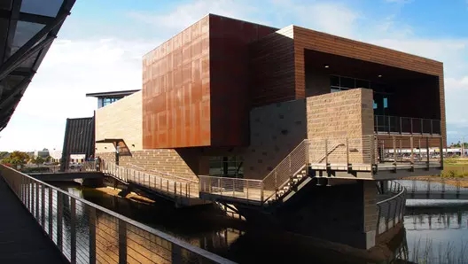 第一部分是科學中心(Science Center),一個獨立式的教育/辦公中心,這是污水廠向公眾開放參觀的第一印象和參觀行程的起點??茖W中心是參觀中心和處理工藝系統(tǒng)的物理連接點,向公眾介紹處理設備的外形與材料,拉近工業(yè)應用和人們的距離。同時過渡帶用不同的橋來連接在科學中心周圍的示范性濕地。