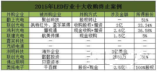 2015年LED行業(yè)上市公司10大收購(gòu)終止事件