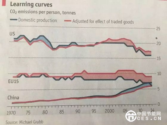 在氣候談判中,中國(guó)由于碳排放總量最大,人均也在去年超過(guò)了歐盟,被推上承擔(dān)更多責(zé)任的位置。而近期一份數(shù)據(jù)顯示,作為世界工廠(chǎng),中國(guó)的人均碳排放量如果經(jīng)過(guò)出口貿(mào)易的調(diào)整,和歐盟還是有一定距離的,而且小藍(lán)還發(fā)現(xiàn)國(guó)內(nèi)人均碳排放量在去年出現(xiàn)了下降。