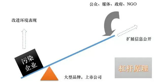 ▲通過(guò)信息公開(kāi)這個(gè)杠桿,以品牌、上市公司為支點(diǎn),公眾、媒體、政府、NGO合力撬動(dòng)污染企業(yè)改進(jìn)其環(huán)境表現(xiàn),隨著環(huán)境信息公開(kāi)的不斷擴(kuò)展,杠桿的撬動(dòng)力將越大。