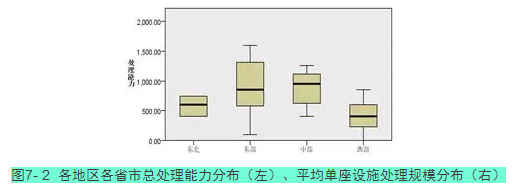 2、各地區(qū)設(shè)施建設(shè)總能力相差較大,但單座設(shè)施平均規(guī)模相差不多