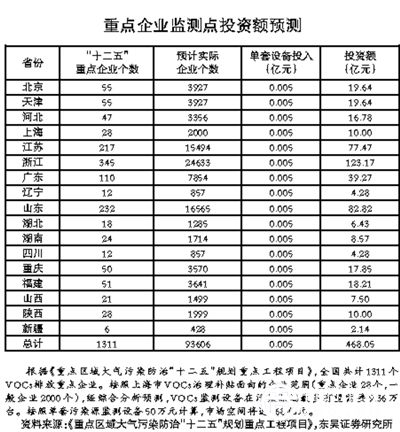 天津市規(guī)定,排氣筒的VOCs排放速率大于2.5千克/小時(shí)或排氣量大于6萬(wàn)立方米/小時(shí),必須配套建設(shè)VOCs在線監(jiān)測(cè)設(shè)備。據(jù)了解,廣東、北京、河北、重慶等省(直轄市)正在研究制定在線監(jiān)測(cè)具體方案。