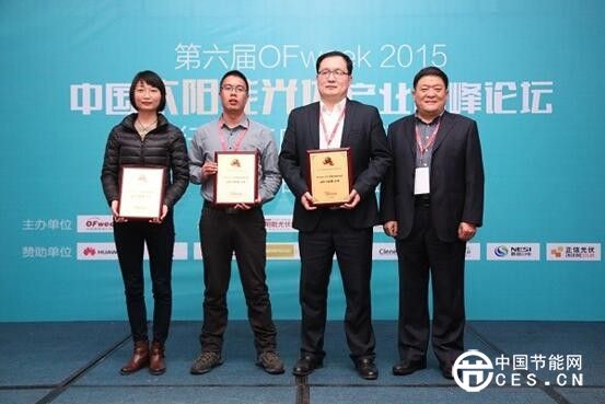 2015年12月11日,萬眾矚目的“OFweek 2015中國太陽能光伏行業(yè)年度評選頒獎(jiǎng)盛典”在上海世紀(jì)皇冠假日酒店隆重舉行。江蘇中電云商有限公司以領(lǐng)先的技術(shù)服務(wù)和創(chuàng)新的業(yè)務(wù)模式得到了廣大用戶和行業(yè)專家的青睞與支持,順利斬獲“OFweek 2015中國太陽能光伏行業(yè)年度最佳互聯(lián)網(wǎng)+企業(yè)”大獎(jiǎng)。