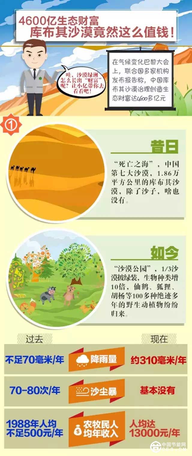 “如果說庫布其生態(tài)經(jīng)濟模式有什么秘密,那就是創(chuàng)新了‘治沙、生態(tài)、經(jīng)濟、民生’平衡驅(qū)動可持續(xù)發(fā)展的商業(yè)模式;創(chuàng)新了政府政策性支持、企業(yè)商業(yè)化投資、農(nóng)牧民市場化參與的‘PPP+’合作機制;構(gòu)筑了防沙治沙、生態(tài)修復(fù)、土地整治、沙漠生態(tài)產(chǎn)業(yè)開發(fā)環(huán)環(huán)相扣的沙漠生態(tài)產(chǎn)業(yè)鏈;實現(xiàn)了投資有收益,產(chǎn)品有市場,農(nóng)民有收入,政府有稅收,生態(tài)環(huán)境有保障的可持續(xù)發(fā)展。”在巴黎氣候大會上,“全球治沙領(lǐng)導(dǎo)者”、億利資源集團董事長王文彪一語道出了庫布其綠色發(fā)展的“密碼”。