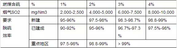 按照燃煤含硫量推算,新環(huán)保標準對脫硫效率的要求如下。