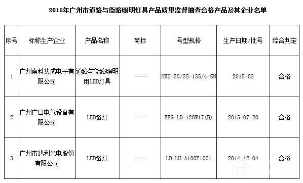 12月15日,廣州市質(zhì)量技術(shù)監(jiān)督局在其官網(wǎng)公布2015年廣州市道路與街路照明燈具產(chǎn)品質(zhì)量監(jiān)督抽查結(jié)果,共抽查了3家企業(yè)生產(chǎn)的3批次產(chǎn)品,經(jīng)檢驗全部符合標(biāo)準(zhǔn)要求。