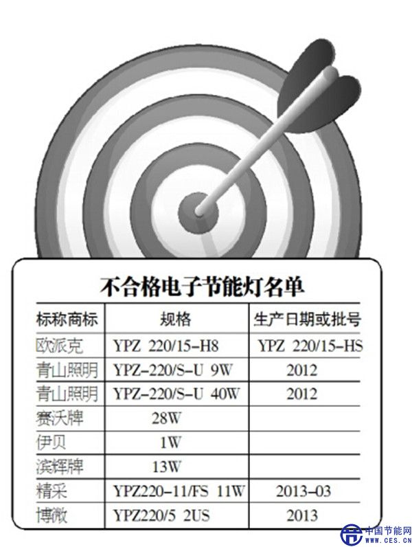 省工商局相關(guān)人士向記者介紹,燈功率作為給消費(fèi)者明示的重要參數(shù),決定了產(chǎn)品的耗電量,對燈亮度也有一定的影響,是節(jié)能燈重要的性能指標(biāo);初始光效是評定節(jié)能燈能效水平的參數(shù),也是反映節(jié)能燈產(chǎn)品是否具備節(jié)能效果的重要指標(biāo),該指標(biāo)不符合國家標(biāo)準(zhǔn)要求,將直接導(dǎo)致節(jié)能燈達(dá)不到節(jié)能的效果。