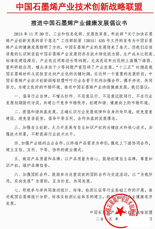 批復(fù)還強(qiáng)調(diào),重在拓寬上下游技術(shù)合作、產(chǎn)品試制、應(yīng)用示范及市場推廣的渠道,搭建信息交流和共享平臺(tái),縮短下游產(chǎn)業(yè)所需的石墨新材料研制開發(fā)、投入使用、進(jìn)入市場的周期?;I建產(chǎn)業(yè)聯(lián)盟,要本著單位自愿、優(yōu)勢互補(bǔ)、合作互惠、共同發(fā)展的原則,以終端產(chǎn)品為龍頭,采用“一條龍”方式,圍繞產(chǎn)業(yè)鏈組織集聚國內(nèi)優(yōu)勢企業(yè)、高校和科研院所等單位的力量。