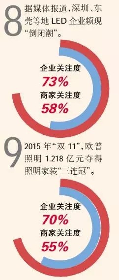 此外,2015年,照明燈飾行業(yè)進(jìn)入“快速淘汰期”以及新一輪的“洗牌排序期”。對于LED照明燈飾行業(yè)而言,兼并收購、跑路、高管地震、董事辭職等事件層出不窮,有很多企業(yè)“疲態(tài)盡顯”后默默退出,然而亦有一些企業(yè)毅然堅(jiān)守,它們堅(jiān)信,撥開層層迷霧后終究會迎來勝利的曙光。