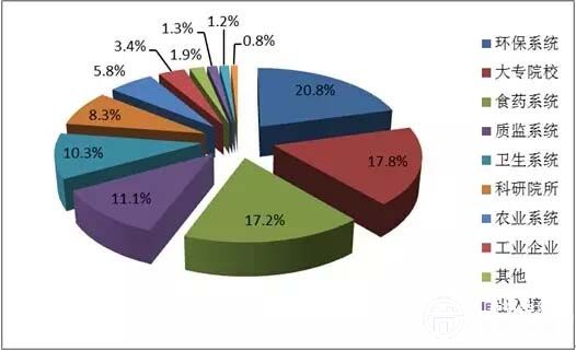 “環(huán)保系統(tǒng)”是2015年分析儀器的采購(gòu)大戶,比例高達(dá)20.8%。