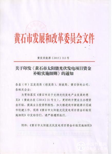 湖北黃石市光伏發(fā)電項(xiàng)目資金補(bǔ)貼實(shí)施細(xì)則