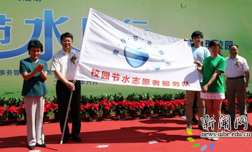 節(jié)水志愿者服務(wù)隊(duì)隊(duì)旗迎風(fēng)飄揚(yáng) “我與節(jié)水同行”校園活動(dòng)開(kāi)幕