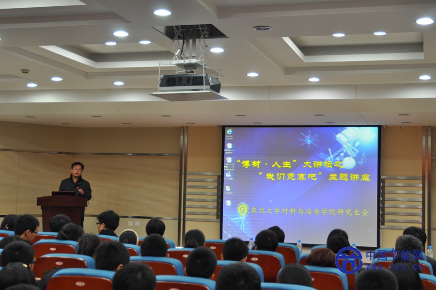 2013年11月22日,材料與冶金學院研究生會于知行樓634室舉行了“博材·人生”大講壇之“我們競賽吧!”大型經(jīng)驗交流會。應邀參加此次活動的領導和老師有材料與冶金學院黨委副書記兼副院長賀翔、學生工作辦公室主任呂志娟、輔導員關曉晨、魏先越等,應邀作交流報告的主講嘉賓有東北大學學生創(chuàng)新中心科普部部長黃曉穎老師、材料與冶金學院輔導員董磊老師以及兩支取得相關競賽國家級獎項的學生團隊主要成員。本次活動主要針對即將開賽的全國大學生“挑戰(zhàn)杯”、“節(jié)能減排”大賽進行參賽指導和團隊經(jīng)驗交流。
