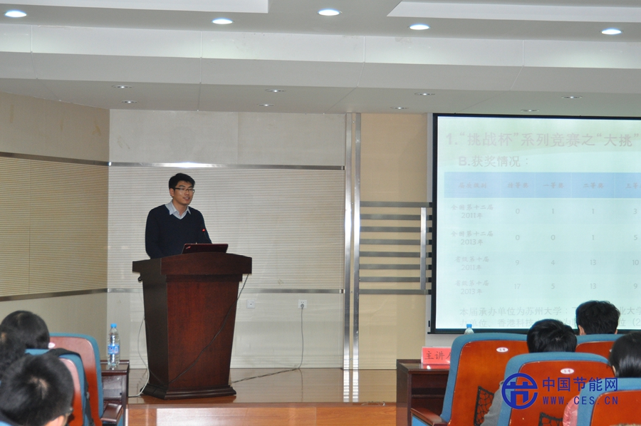 其后,董磊老師首先結合其豐富的參賽和獲獎經(jīng)驗,向全體同學展示了在參加準備“節(jié)能減排”競賽和“挑戰(zhàn)杯”大賽時應該注意的相關問題,隨后,另外兩支有著豐富的“挑戰(zhàn)杯”大賽和“節(jié)能減排”競賽經(jīng)驗的團隊分別與大家進行了深入的經(jīng)驗交流和分享;