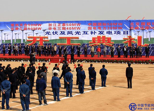 這次集中開工的8個(gè)項(xiàng)目是常州天合紅沙崗50MW光伏發(fā)電項(xiàng)目、華電紅沙崗三期40MW光伏發(fā)電項(xiàng)目、甘肅匯能紅沙崗二期50MW光伏發(fā)電項(xiàng)目、北京國能紅沙崗50MW光伏發(fā)電項(xiàng)目、國電電力武威公司紅沙崗二期30MW光伏發(fā)電項(xiàng)目、浙江正泰紅沙崗一期50MW光伏發(fā)電項(xiàng)目、中國國際能源紅沙崗50MW光伏發(fā)電項(xiàng)目和武威潔源紅沙崗58.5MW試驗(yàn)風(fēng)光互補(bǔ)項(xiàng)目。