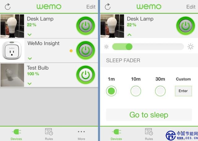 智能燈泡之所以售價(jià)較高很大一部分原因就是來自“智能”二字,而WeMo智能LED自然不會(huì)讓懶人們失望。在WeMo應(yīng)用中,你不僅可以手動(dòng)設(shè)置定時(shí)開啟功能,而且還能讓它根據(jù)每天的日出時(shí)間叫醒你。同時(shí),WeMo智能LED還擁有以分鐘和小時(shí)為單位的漸暗模式,幫你產(chǎn)生睡意,而這也是TCP智能LED所缺少的。