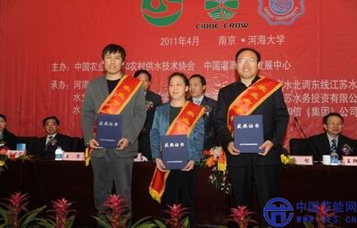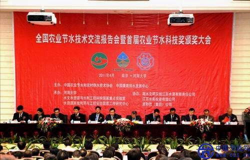 首屆農(nóng)業(yè)節(jié)水科技獎獲獎單位代表上臺領(lǐng)獎