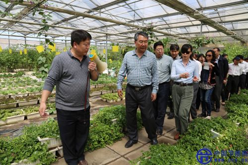 北京市農(nóng)業(yè)局局長吳寶新(左二)察看北京金六環(huán)農(nóng)業(yè)園,園區(qū)全部鋪設(shè)微噴灌帶,微灌與地面灌溉相比,可節(jié)水80%—85%。