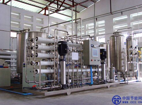 第三種:采用兩級反滲透方式:自來水→多介質(zhì)過濾器→活性炭過濾器→軟化水器→中間水箱→低壓泵→精密過濾器→一級反滲透→PH調(diào)節(jié)→混合器→二級反滲透(反滲透膜表面帶正電荷)→純水箱→純水泵→微孔過濾器→用水點