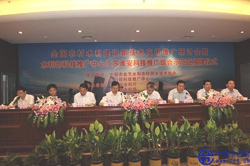為了貫徹中央水利工作會(huì)議精神,加強(qiáng)農(nóng)村水利科技交流,“農(nóng)村水利建設(shè)新技術(shù)應(yīng)用推介研討會(huì)暨水利部科技推廣中心江蘇淮安科技推廣綜合示范區(qū)揭牌儀式” 在運(yùn)河之都江蘇省淮安市隆重召開。會(huì)議圍繞農(nóng)村水資源管理、農(nóng)田水利、節(jié)水灌溉、農(nóng)村飲水安全、渠道防滲、水質(zhì)監(jiān)測(cè)等領(lǐng)域的最新研究進(jìn)展、成果進(jìn)行了推廣交流。本次會(huì)議是在水利部和江蘇省水利廳的大力支持下,由中國農(nóng)業(yè)節(jié)水和農(nóng)村供水技術(shù)協(xié)會(huì)與水利部科技推廣中心共同主辦、淮安市水利局具體承辦。