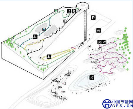 與此同時,由于設(shè)計了人造斜坡,這一巨型垃圾焚化爐還是終年開放的滑雪場——三條滑雪道、各種滑雪設(shè)施、公園及休憩場地一應(yīng)俱全。游客可以通過煙囪旁邊的升降梯到達位于貝殼頂部的滑雪場,升降梯朝內(nèi)并有兩個孔徑,因此你可以在上升下降的同時觀看并了解廢物處理裝置內(nèi)部的運作流程??梢娝鋵嵤且粋€環(huán)保、經(jīng)濟、有趣的綜合性裝置。