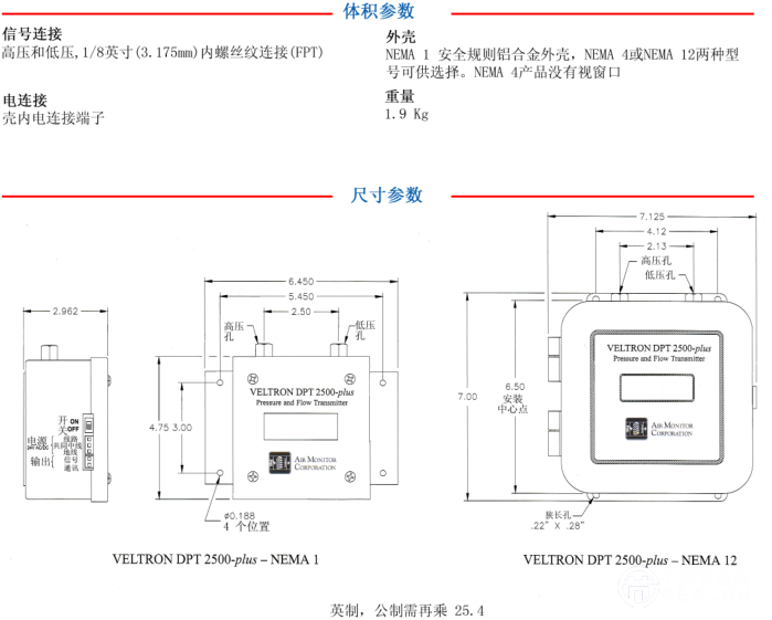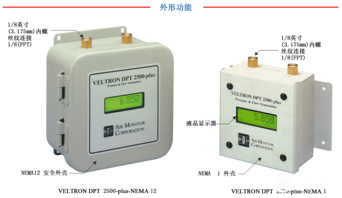 plus流量計算器有NEMA 1鋁合金外殼以及外殼內(nèi)電線端子;在當(dāng)使用環(huán)境需要的時候,VELTRON DPT 2500-