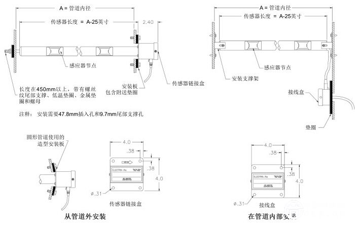 l 四種安裝方式滿足各種應(yīng)用工況;傳感器材質(zhì)一般采用316不銹鋼,還可以選擇哈氏合金等特殊防腐材質(zhì)。
