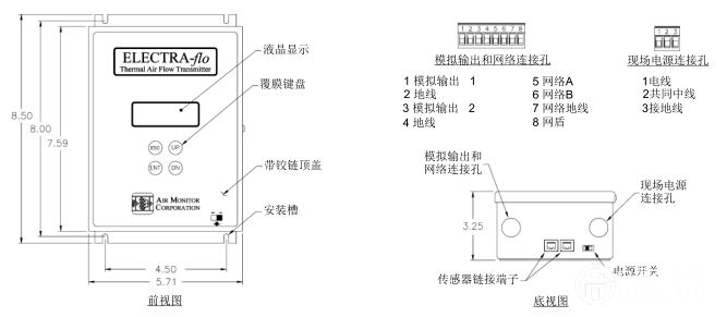 · 外殼.ELECTRA-flo熱式系統(tǒng)的變送器為:NEMA 1安全等級、帶鋁合金外殼、帶鉸鏈頂蓋和插入式接線端子,便于現(xiàn)場接線。