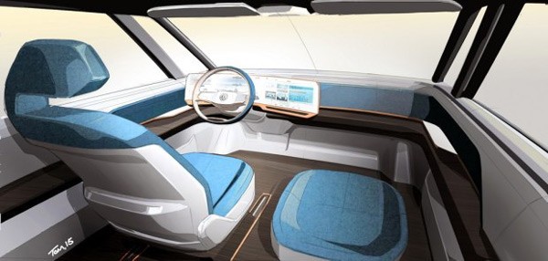 車(chē)內(nèi)來(lái)看,這款概念車(chē)采用了極簡(jiǎn)的設(shè)計(jì)風(fēng)格,副駕駛座椅向后,而后排沒(méi)有采用傳統(tǒng)座椅,而更像是放入了一套“沙發(fā)”,同時(shí)我們看到車(chē)內(nèi)幾乎沒(méi)有使用傳統(tǒng)的按鈕和旋鈕,而是整體采用了多塊大尺寸的液晶屏,駕駛席一側(cè)的屏幕為7.9英寸,而副駕一側(cè)的屏幕為5.9英寸。此外該車(chē)還配備了e-Mirror電子后視鏡,新一代的人機(jī)交互界面、新多功能方向盤(pán),并可以將內(nèi)部的氛圍燈進(jìn)行個(gè)性化設(shè)定。
