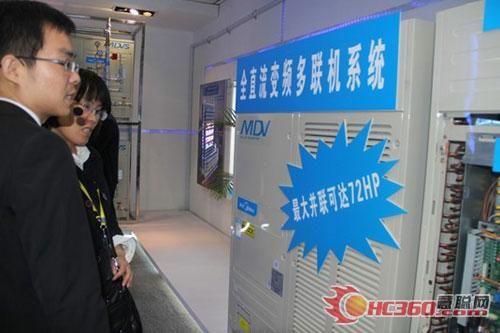 美的展示的“全直流變頻多聯(lián)機(jī)組”成為制冷展上炙手可熱的明星產(chǎn)品之一。該機(jī)組全部采用大排量高效率直流變頻壓縮機(jī),結(jié)合最新的180正弦直流變頻技術(shù)、領(lǐng)先的無極矢量變頻驅(qū)動(dòng)技術(shù)、行業(yè)獨(dú)創(chuàng)的高效G型換熱器、R410A環(huán)保冷媒技術(shù)、完全滿足RoHS指令等多種先進(jìn)技術(shù)于一體,綜合能效系數(shù)達(dá)5.8,達(dá)到目前全行業(yè)業(yè)第一高能效水平,比國家一級能效標(biāo)準(zhǔn)高出63.4%。同時(shí)機(jī)組容量達(dá)72HP,是當(dāng)前全球最大容量多聯(lián)機(jī)組。