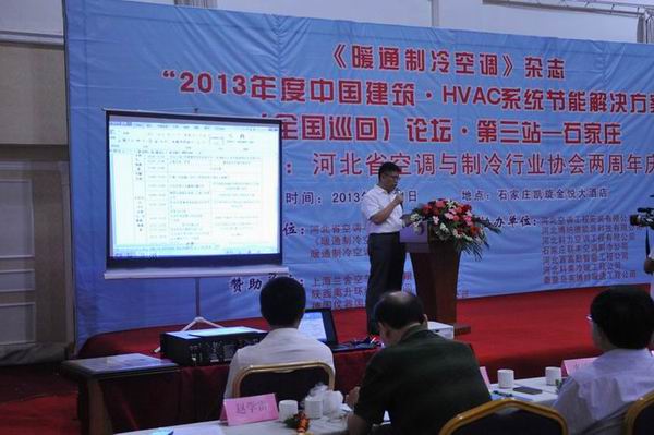 在會議的論壇階段,由中國安裝協(xié)會通風(fēng)空調(diào)分會外聯(lián)主任張建章和河北省空調(diào)與制冷行業(yè)協(xié)會秘書長馬譽(yù)國交替主持。上海蘭舍空氣技術(shù)公司總監(jiān)朱偉、河北科萊公司董事長董寶財、德圖儀器國際貿(mào)易(上海)有限公司經(jīng)理叢薇、北京中電寶晟公司總經(jīng)理丁玉成、陜西奧升環(huán)境公司總經(jīng)理徐東平、保定市碩達(dá)建筑安裝公司總經(jīng)理畢興中就建筑室內(nèi)環(huán)境節(jié)能技術(shù)、空氣源超導(dǎo)輻射供暖系統(tǒng)、空調(diào)及制冷系統(tǒng)全面檢測方案、電鍋爐節(jié)能和中央空調(diào)水系統(tǒng)節(jié)能閥、中央空調(diào)綜合節(jié)能、中央空調(diào)環(huán)境下的空氣安全等問題做精彩演講,與會者反響熱烈。