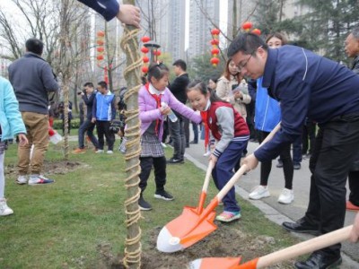 與會人員同小學(xué)生一起參加了義務(wù)植樹活動,在成華公園內(nèi)種下了20棵晚櫻樹。
