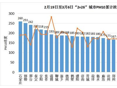 根據(jù)2月19日至3月6日的數(shù)據(jù)來看,全國337城市中PM10平均濃度上升的有204個(gè)。其中PM10小時(shí)濃度超過350微克/立方米(重污染濃度限值)的有68個(gè)城市。