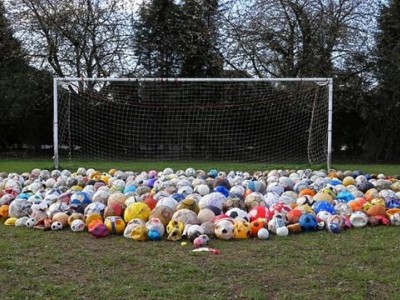 全部992個廢棄足球匯集在一起